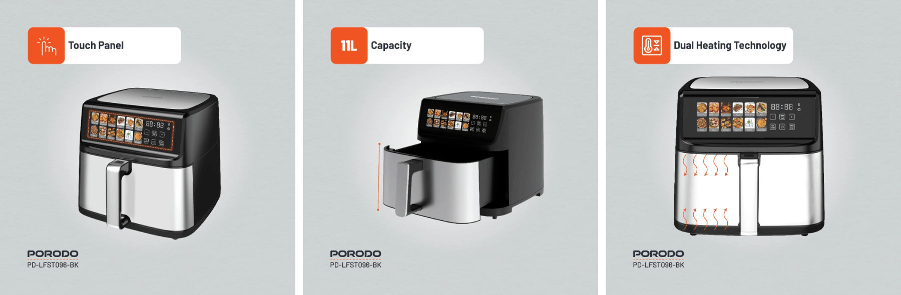 Porodo Lifestyle 1800W Dual Mode Air Fryer 11L (Black)