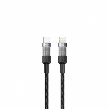 Porodo Braided USB Cable 30W PD C to Lightning with Transparent Head 1.2M (PD-30WCLTH-BK) Black