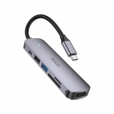 Hoco Adapter HB28 Type-C multi-function HDTV+USB3.0+USB2.0+SD+TF+PD (Metal Gray)