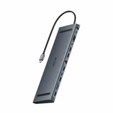 Hub Powerology 12In1 Usb-C Hub Hdmi Type-C 100W Pd Ethernet Vga Usb Sd Microsd 3.5Aux P121HBCGY (Dark)