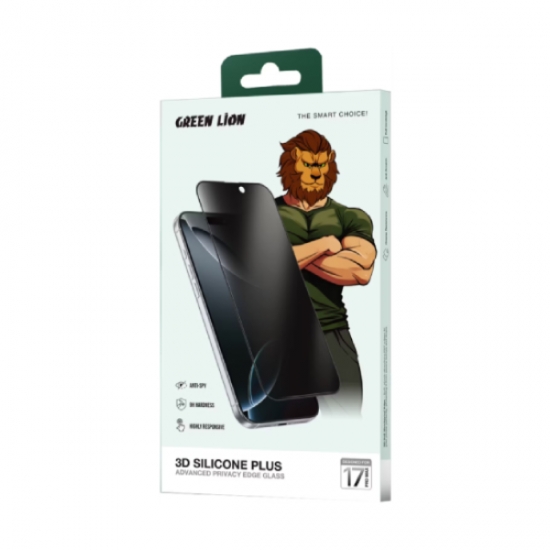 Green Lion 3D Silicone Plus Privacy Screen Protector Glass For iPhone 17 Pro Max (Black)