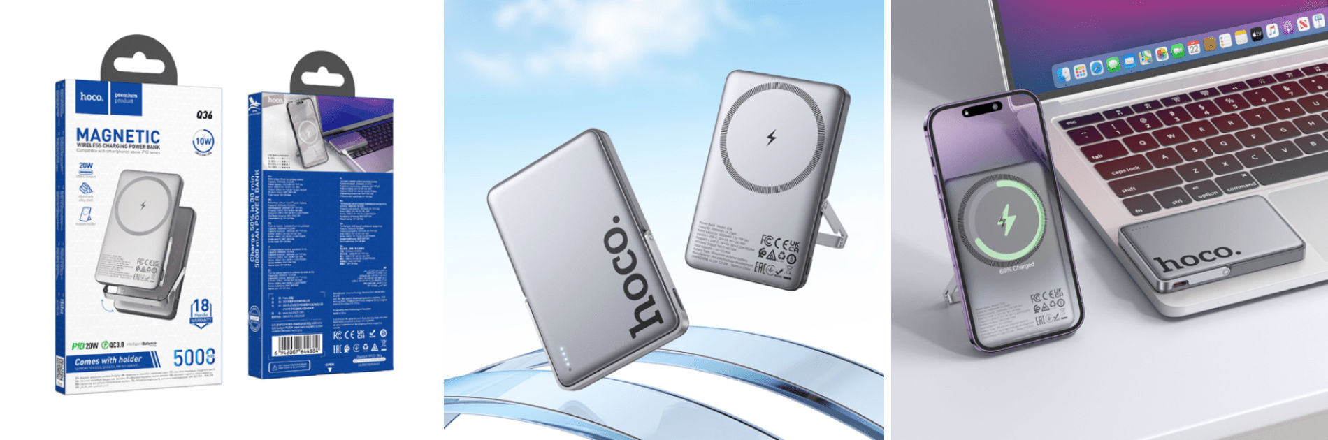 Hoco Sunlight PD20W magnetic suction Power Bank Q36 + holder 5000mAh (Metal)